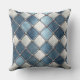 This seamless geometric pattern throw pillow features a striking arrangement of metallic blue and silver diamond tiles connected with circular rivet details. The design showcases a modern industrial aesthetic with a luxurious metallic sheen and gradient texture, blending shades of cobalt, steel blue, and chrome silver. This pattern exudes strength, sophistication, and modern artistry. Ideal for geometric design lovers and those who appreciate metallic elegance and structured precision.
