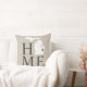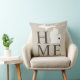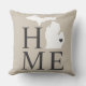 O travesseiro na moda de boas-vindas apresenta um design de tipografia com texto "Home" e mapa do estado de Michigan. O marcador de cidade do coração preto suave / onyx pode ser posicionado sobre a cidade onde você mora via Personalizar. Cor bege, preto suave e branco. Um padrão de listras horizontais veste a parte de trás do travesseiro.