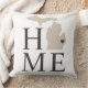 O travesseiro na moda de boas-vindas apresenta um design de tipografia com texto "Home" e mapa do estado de Michigan. O marcador de cidade do coração preto suave / onyx pode ser posicionado sobre a cidade onde você mora via Personalizar. Cor bege, preto suave e branco. Um padrão de listras horizontais veste a parte de trás do travesseiro.