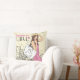 travesseiro decorativo decorativo na moda com uma moça de moda com bolsa em estilo de esboço num fundo da cidade.