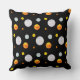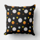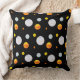 Belo travesseiro decorativo com belas bolinhas de moda em fundo preto. As belas bolinhas se assemelham a planetas de um universo. Design para adultos, bem como para estudantes ou crianças.