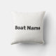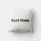 Este travesseiro decorativo branco tem texto preto. Você pode editar o texto para mostrar o nome do barco ou uma mensagem personalizada.