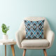 Corajoso padrão de estilo de deco de arte moderna em azul e preto com o aspecto de batik pintado manualmente. Este travesseiro decorativo adicionará uma abertura de cor a qualquer decoração.