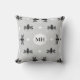 Modern Gray Elegant Black Bee Pattern Monogram Throw Pillow.