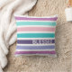 O Pastel moderno Striped Christian BLESSED travesseiro decorativo em faixas horizontais, cor-de-rosa e aqua, com a palavra BLESSED. Este texto é PERSONALIZÁVEL para que você possa adicionar seu nome ou criar seu próprio texto. Este travesseiro decorativo listrado cristão BLESSED faria um brilhante suplemento de verão à sua decoração natal, e faria um presente excelente para o Natal e aniversários. Escolha entre uma ampla seleção de travesseiros cristãos desenhados por Designs bereanos