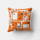 Este travesseiro é coberto por retângulos modernos do século médio laranja e estrelas pretas.