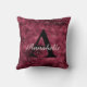 Os designs apresentam um elegante padrão de brilho vermelho-vermelho-vermelho-brilhante. Você pode personalizar as iniciais do monograma ou limpar todos os campos de texto para obter um travesseiro somente padrão burgundy.
