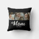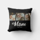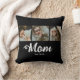 Custom Mom Established Modern Bold Script Black 3 Photo Throw Pillow with White Text on a Black Background. Replace the photos with your own and change the years to the year(s) you became a mom. You can change "mom" to mum or mama if needed (leave the little square in place).