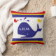 Almofada MONOGRAM em baleias azuis, amarelas e vermelhas em