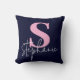 Monogram Lettered Script Navy Blue and Pink Throw Pillow. Stylishly personalize with your monogram initial.
