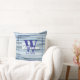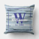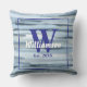 Almofada quadrada personalizável com monograma letra inicial, nome da família e data, ano de fundação. Ótima como presente de casa nova, novo lar, aniversário ou para recém-casados. Monocromático pastel neutro em nuances de azul, azul-marinho, verde-azulado, cinza, branco, lembrando o tema de design amado náutico, marítimo, marinho, estilo de casa de lago, casa de praia. Padrão original pintado à mão com listras em aquarela. Para decoração da sua casa, ou como um presente original criativo e útil. É fácil de combinar e certamente será apreciado e admirado.