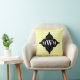 Um padrão elegante de chevron em amarelo e branco com um filme quatrefoil preto no centro. Personalize ambos os lados deste belo travesseiro decorativo decorador com o seu monograma.