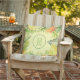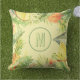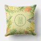 Os travesseiros de tecido ao ar livre apresentam o seu monograma rodeado por flores tropicais de cor aquosa, frutas e folhas sobre um fundo verde macio e pálido, ou qualquer cor que escolher. CORRESPONDENDO a itens na nossa loja.