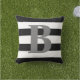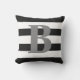 Projetado com as listras preto e branco corajosas na parte dianteira e a parte traseira do travesseiro e da parte anterior tem a letra cinzenta grande do monograma no centro.