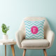 Personalize este padrão vibrante de fevron azul e branco com um design de monograma rosa brilhante com o seu início.