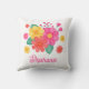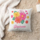 Personalize este travesseiro bonito com o seu nome. Apresenta um design floral original moderno com flores cor-de-rosa, laranja e amarelas.