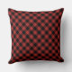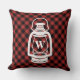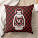 Um travesseiro que caracteriza um teste padrão vermelho e preto da xadrez da herança (búfalo) na parte dianteira e na parte traseira. A parte dianteira caracteriza uma ilustração branca de uma lanterna de acampamento do óleo. Personalize a inicial na lanterna.
