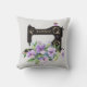 A costura de um travesseiro decorativo temático padronizado em uma máquina de costura em estilo vintage preto sobre um fundo de cinza muito leve, acentuado com o seu monograma escolhido e um buquê brilhante de flores roxas leves. Apenas edite o monograma. Sua escolha de estilos e tamanhos. Belo sotaque para qualquer quarto de costura ou quarto.
