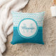 Dê a seu estilo pessoal um olhar contemporâneo feminino com este travesseiro decorativo na moda do azul e do branco de turquesa com um teste padrão de bolinhas do círculo da modificação. Toda a menina moderna amaria ter sua inicial do nome e do monograma personalizada neste design formal e moderno.
