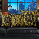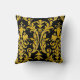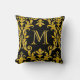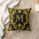 Almofada Monograma das espirais florais do Damasco preto e