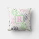 Almofada Monograma de água-forte com padrão de flor rosa ve