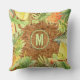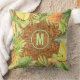 O seu monograma está rodeado por flores tropicais de aquarela, frutas e folhas num padrão de impressão de tecido, travesseiros de verão na moda. CORRESPONDENDO a itens na nossa loja.