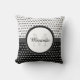 Dê ao seu estilo pessoal um olhar feminino contemporâneo com este travesseiro decorativo preto e branco de tendências com um padrão de bolinhas de círculo mod. Qualquer garota moderna adoraria ter seu nome e monograma inicial personalizado neste pré-disquete e design moderna.