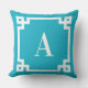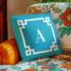 Caribe o azure e a borda quadrada decorativa do estilo chave grego com um monograma serif moderno. Personalize este design contemporâneo escolhendo sua combinação de cores favorita. Altere o estilo, o tamanho ou a cor da fonte, conforme necessário. Combine este tom de azul com a decoração da sua casa. Transferindo este design? Verifique na minha loja a categoria de chave grega as outras formas e tamanhos de travesseiro decorativo... bem como outros presentes de decoração.