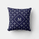 Travesseiro decorativo moderno com cinza geométrico com padrão CROSS de prata contra um fundo azul de meia-noite. No centro há um monograma personalizável, que você pode substituir por seu próprio. O mesmo design também está no sentido inverso. Ideal para atualizações de decoração caseira com um esquema de cores semelhante, também para Aniversário, Natal, Páscoa, Ação de Graças e feriados festivos, salas universitárias, etc. Parte da coleção MONOGRAM CROSS de Designs Bereanos.