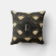 Almofada Monograma de Deco de Arte Dourada e Preta Elegante