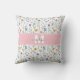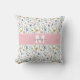 Almofada de lançamento com monograma de flores silvestres elegantes personalizadas. Adicione um toque suave e sofisticado ao seu espaço com esta elegante almofada de lançamento com um delicado padrão de flores silvestres em tons pastel de rosa, roxo, azul, amarelo e verde em um fundo branco limpo. O design é impresso na frente e no verso para um visual polido e coeso. Uma barra rosa atravessa o design com um monograma branco e cinza no centro, criando um sutil e personalizado destaque.