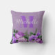 Travesseiro de decorador personalizado, floral, verde e cinzento roxo, bonito e brilhante. Personalizado com seu monograma/inicial e seu primeiro nome em uma fonte elegante de script.