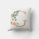 Almofada de monograma G floral feminino e elegante com ilustrações de aquarela de flores brancas, folhagens e monograma em folha falsa. Personalize adicionando um nome ou frase curta. Esta almofada floral monograma será perfeita como um presente personalizado.
