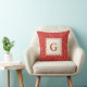 Este travesseiro decorativo apresenta um padrão botânico simples em vermelho e branco. Perfeito para o Natal ou o ano todo. Personalize com seu monograma. ideia de presente de excelente!