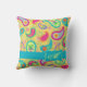 Almofada Monograma de Padrão Moderno da Turquesa Amarela