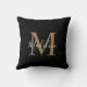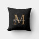 Travesseiro decorativo de Monograma de Script Negra e Dourada