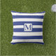 Almofada Monograma de tiras brancas, marinho azul, minimali