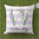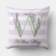 Almofada Monograma de tiras brancas, púrpuras, lavanda