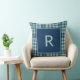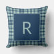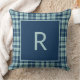 Almofada Monograma de xadrez verde de sábio azul moderno