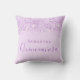 Um travesseiro para uma sala de Quinceañera, com 15 anos de idade. Um fundo roxo, giro, com gotas de brilho, manchas. O texto: Quinceañera é escrito em roxo com um grande estilo escrito à mão moderno. Personalize e adicione um nome.