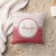 Dê ao seu estilo pessoal um olhar feminino contemporâneo com este travesseiro decorativo cor-de-rosa e branco com um padrão de bolinhas de círculo mod. Qualquer garota moderna adoraria ter seu nome e monograma inicial personalizado neste pré-disquete e design moderna.