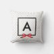 travesseiro de monograma em forma de chic, com um quadrado bordado preto com uma fita vermelha contra um padrão de bolinhas preto e branco. Faz presentes de excelente para família e amigos ou para você mesmo decorar sua casa ou quarto.