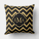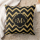 Almofada Monograma do Padrão Dourado Glitter Black Chevron