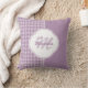 Um bonito travesseiro decorativo púrpura pastel com um padrão de dente em faixas verticais. Personalize este design contemporâneo numa moda de púrpura clara, acrescentando o nome e as iniciais monográficas da jovem moda.