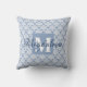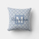 Este belo travesseiro apresenta uma cor damasco branca clássica sobre um fundo de cinza azul-claro. O design é personalizado com uma letra inicial de monograma, assim como um nome personalizável. Adição perfeita a um dormitório, quarto ou qualquer quarto onde você queira um estilo simples e elegante.