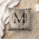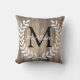 Almofada Monograma Farmhouse White Laurels Leves Planks de