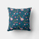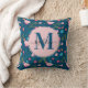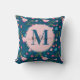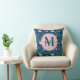 Almofada de Arremesso Monograma Flor Borboleta Rosa Azul Marinho Chic