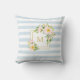 Travesseiro decorativo Costeiro de Stripe Azul de Pastel Chic Floral Monograma. Design floral de tendência elegante com buquês pastel de colheita de rosas selvagens e verde em listras azuis-claras e monograma personalizado. presente personalizado de excelente.