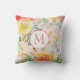 Este travesseiro cor-de-rosa pincelado apresenta um design floral de cor-de-água com brilho falso e monograma redondo. Personalize-o com uma inicial.