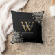 Elegante almofada de nome de monograma floral de rosas pretas e douradas personalizada com inicial de monograma dourado. Criado por Thisisnotme©